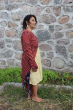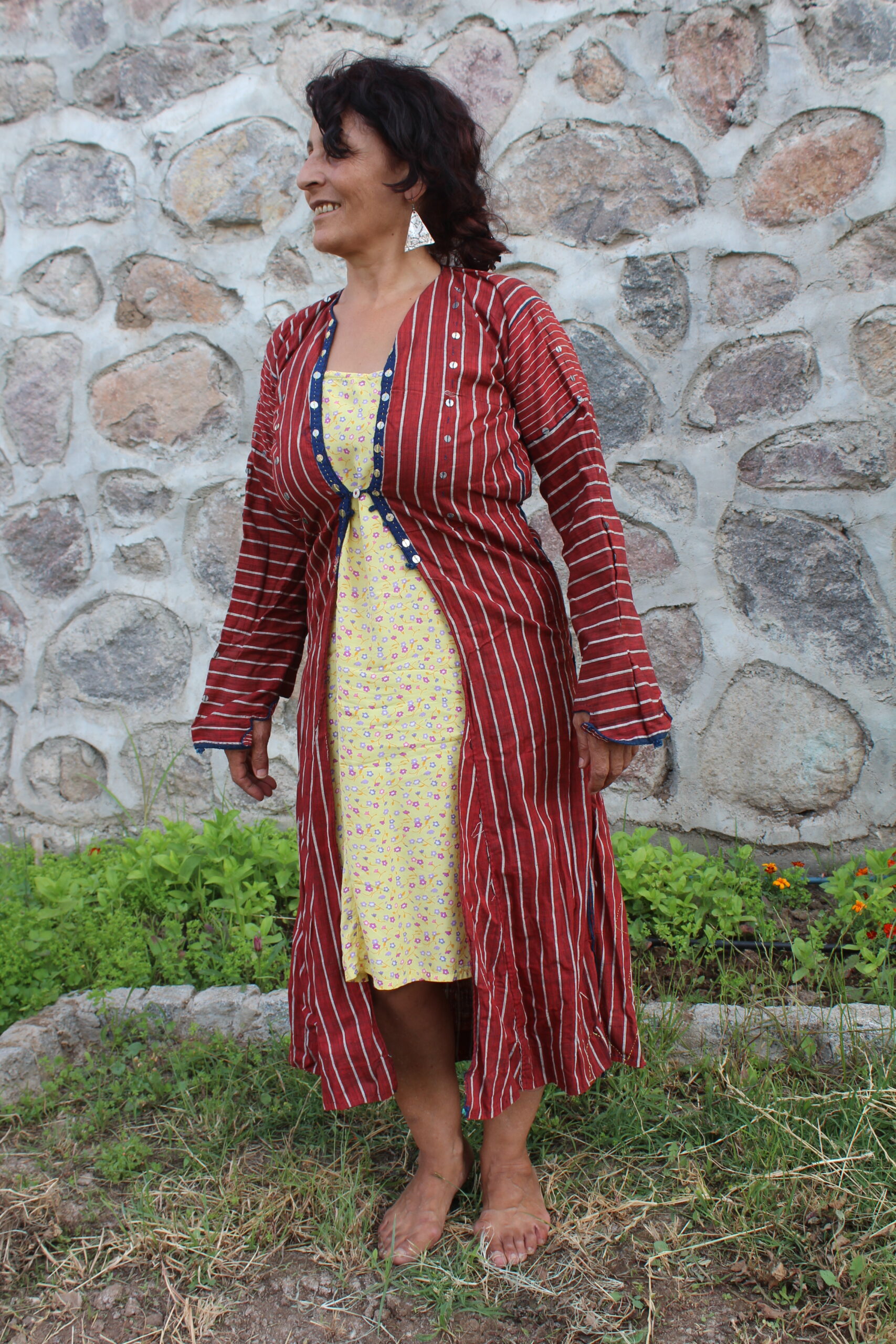 Handmade traditional Turkish dress adorned with colorful and bright natural dyes. Each dress is embroidered with unique patterns and textures, so whether you pair it with trousers or wear it as a robe, it will be a beautiful addition to any look. It fastens with a fixed tie. The height of each dress is in between 110 and 125cm. Please ask for further details.