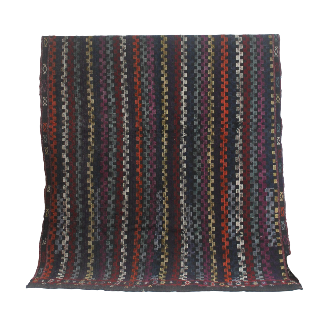 One of a kind, handmade mid-century rug with unique colorful geometric patterns and stripes. Made of wool which was painted with natural dyes, and the rug was hand-woven with traditional methods on a weaving loom. This timeless piece will compliment any contemporary residential and commercial space. Our website contains only a small proportion of our stock, please get in touch if you want to see different options, we are happy to help!